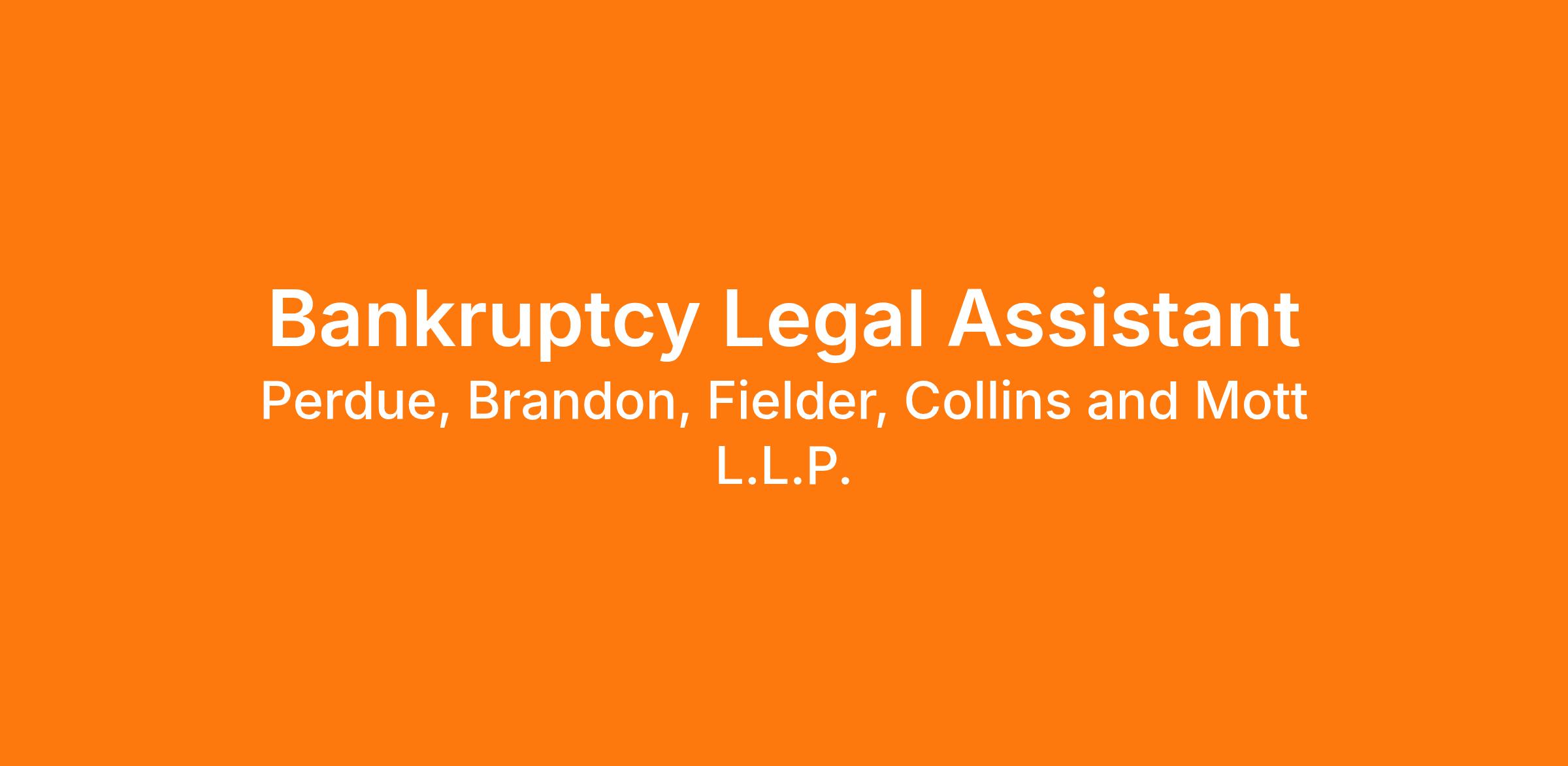 Perdue Brandon Fielder Collins and Mott, LLP (PBFCM) has an immediate opening for a Bankruptcy Legal Assistant in our Houston office.