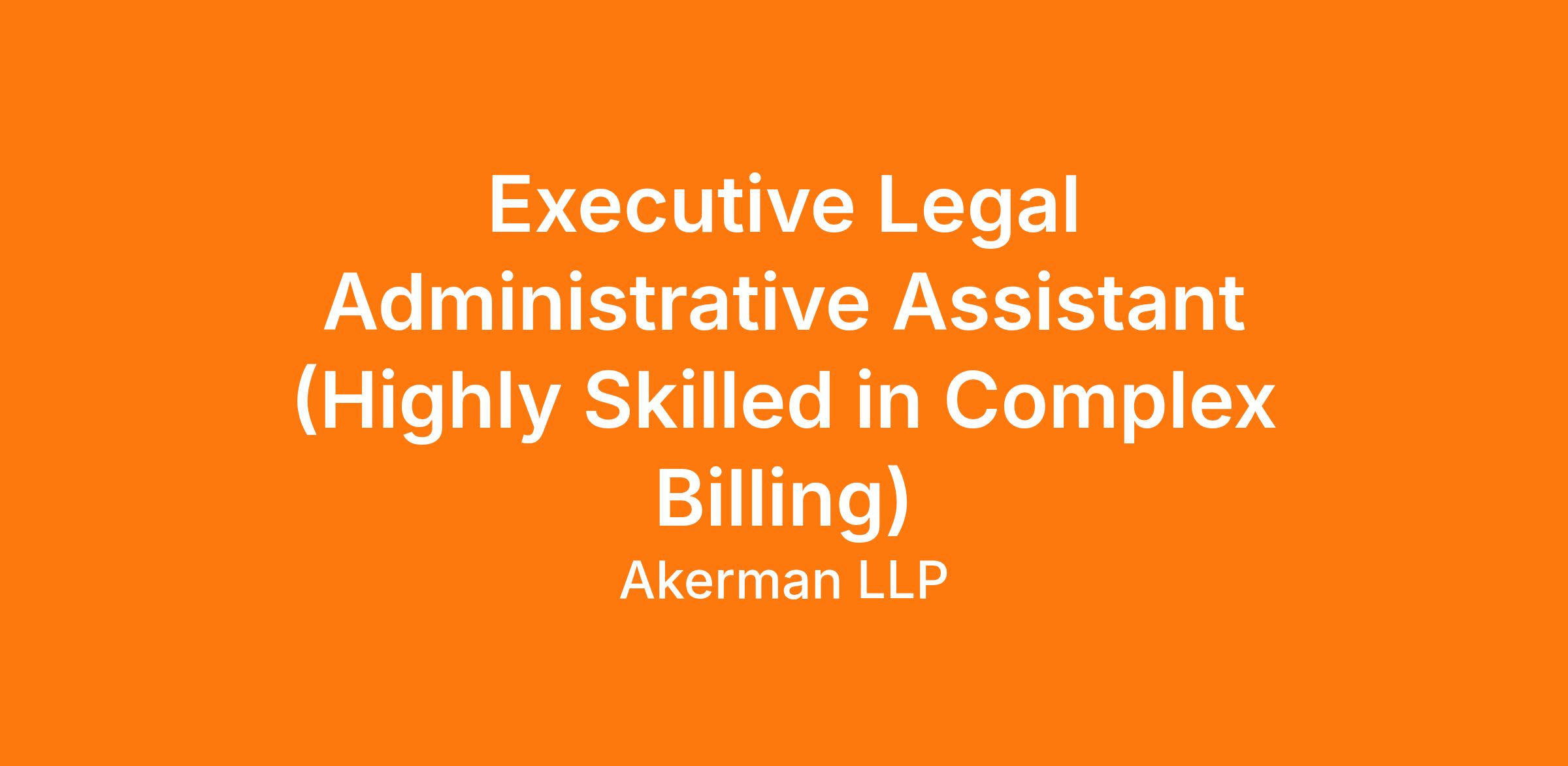 Akerman is seeking a highly professional Executive Legal Administrative Assistant with demonstrated experience supporting senior attorneys with high-volume client billing. The successful candidate will provide executive-level administrative support while managing complex billing workflows, rate arrangements, and matter administration with exceptional accuracy and discretion. This role requires close coordination with Billing and Finance to ensure timely, accurate, and compliant billing consistent with client guidelines. Must have the ability to perform under pressure while maintaining composure and accuracy.