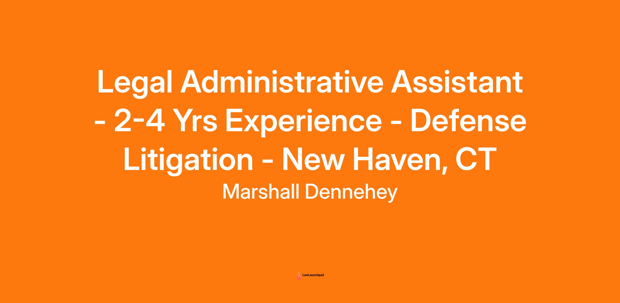 The law firm of Marshall Dennehey seeks a full-time Legal Administrative Assistant with 2-4 years of civil defense litigation experience to join its New Haven, CT office.
