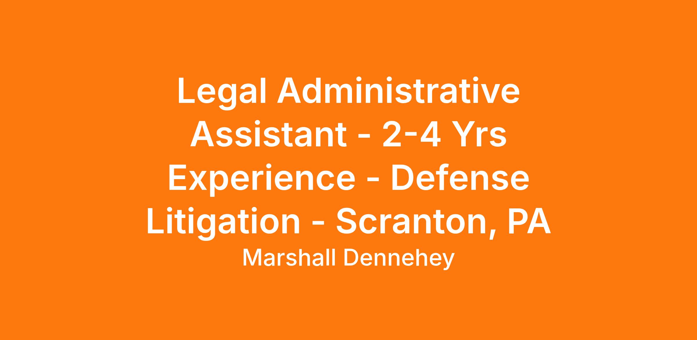The law firm of Marshall Dennehey seeks a full-time Legal Administrative Assistant with 2-4 years of civil defense litigation experience to join its Scranton, PA office.