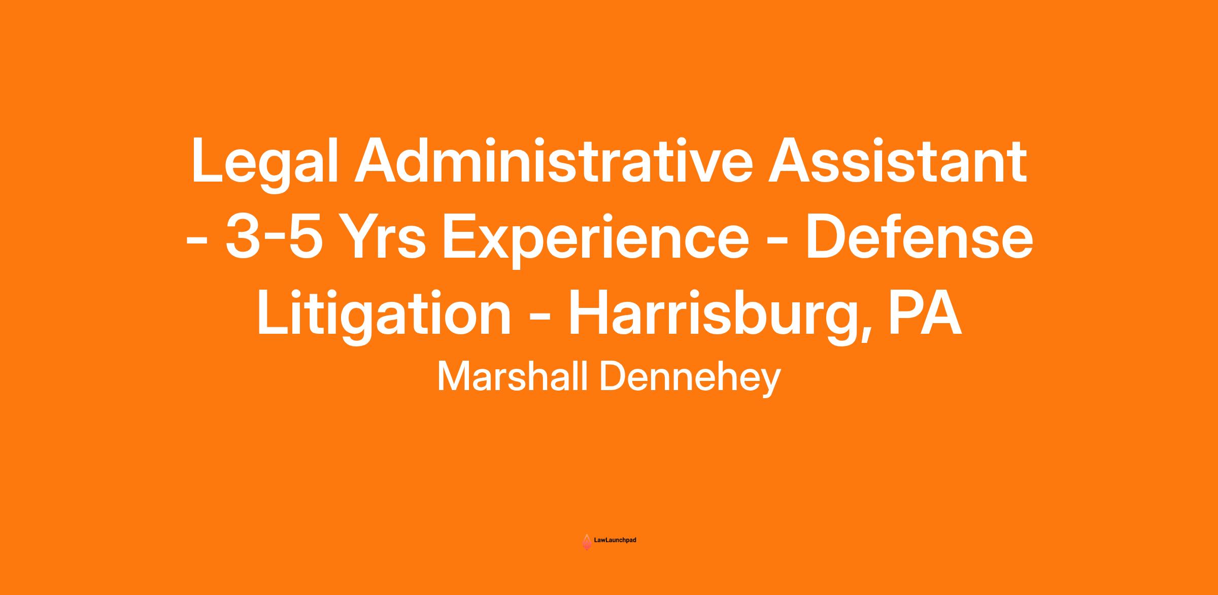 The law firm of Marshall Dennehey seeks a full-time Legal Administrative Assistant with 3-5 years of civil defense litigation experience to join its Harrisburg, PA office.