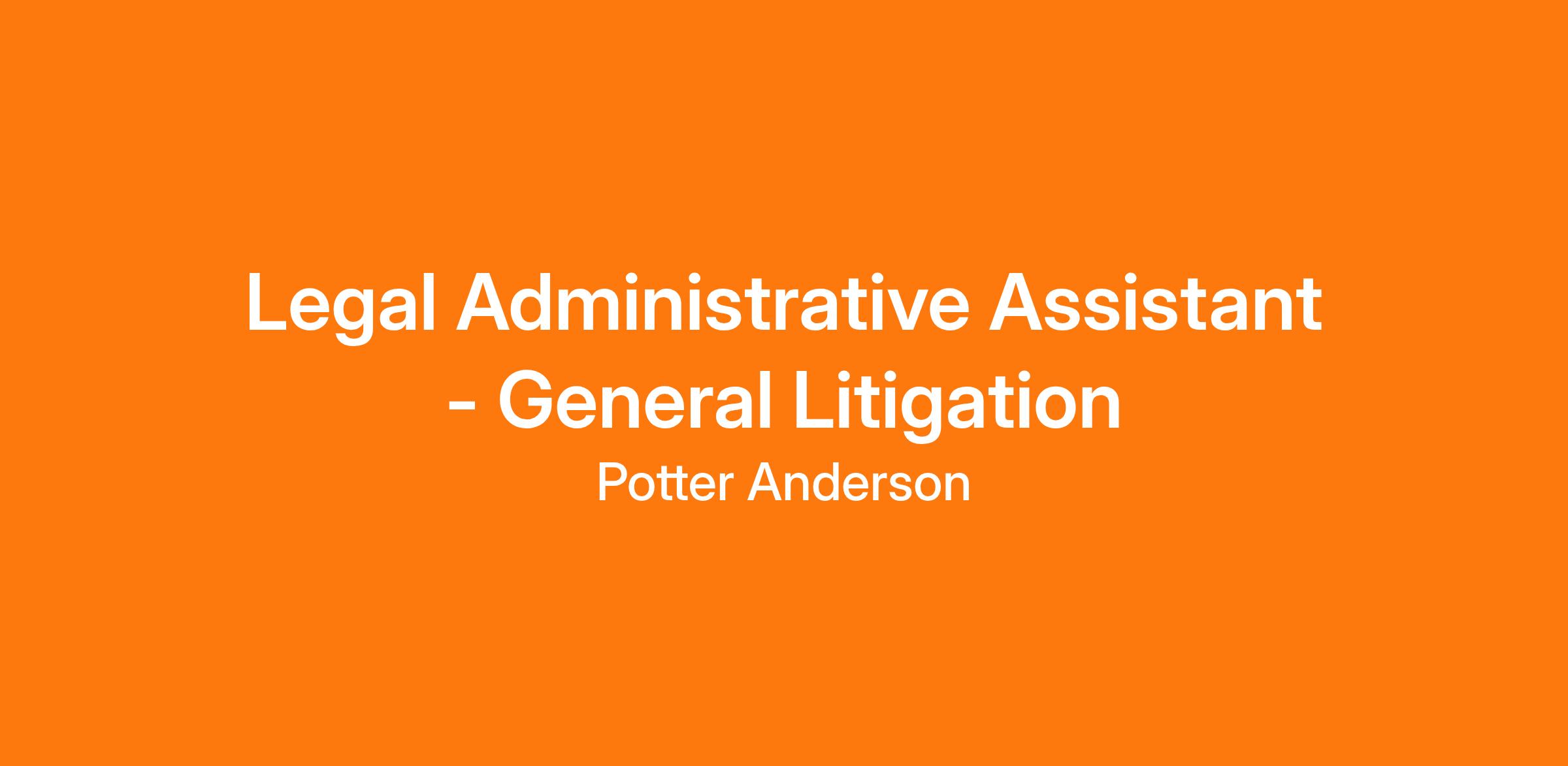 Potter Anderson & Corroon LLP, a major Delaware law firm with a diverse business practice, is seeking a Legal Administrative Assistant to join our General Litigation Group. The Legal Administrative Assistant (LAA) performs a variety of administrative support duties for our lawyers and delivers high-quality service to internal and external clients, exhibiting a commitment to integrity and excellence. This position provides dedicated support to several attorneys in the General Litigation practice.