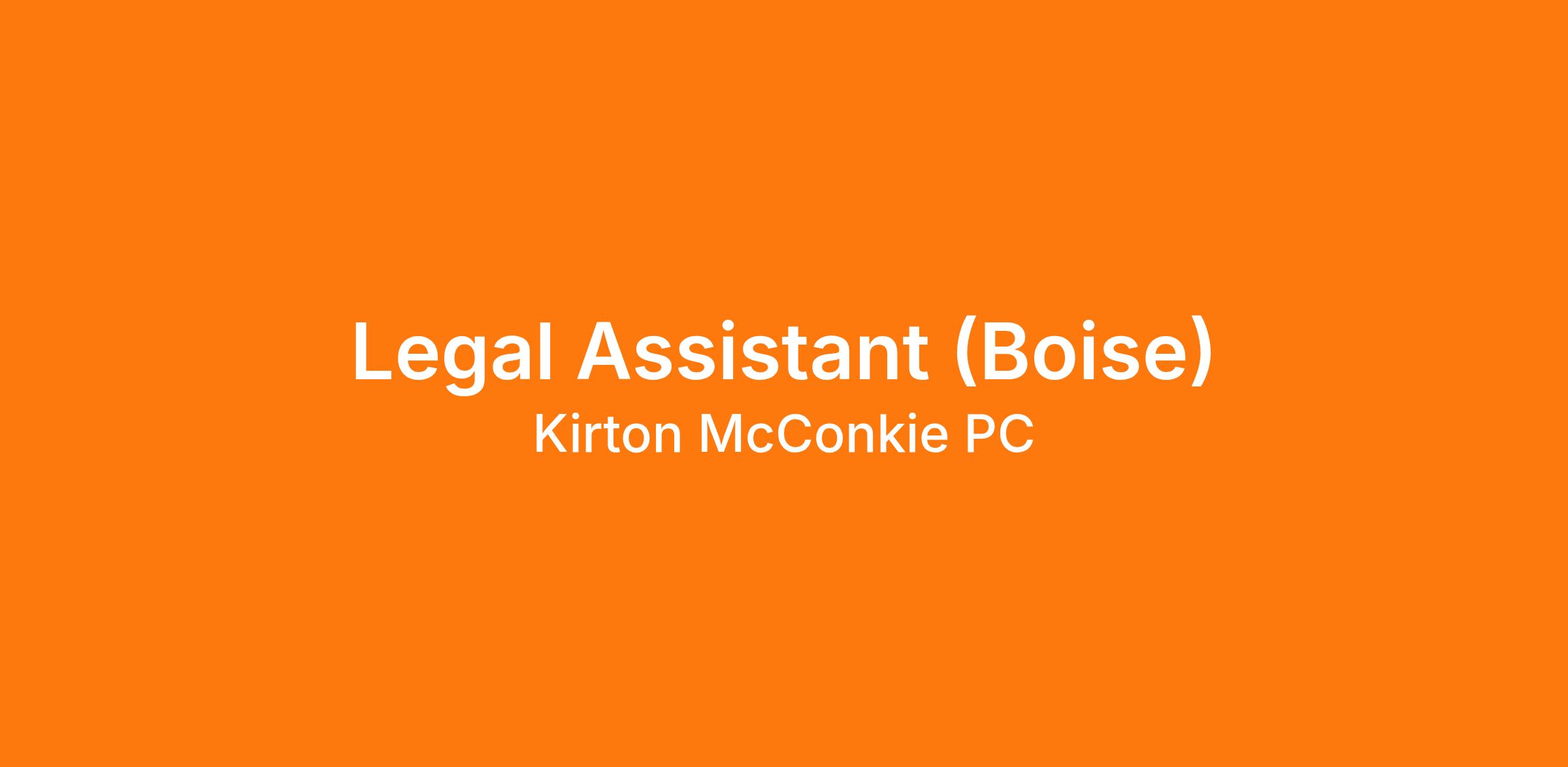 Kirton McConkie has an exciting employment opportunity for a legal assistant in our Boise, Idaho office. The ideal candidate will have a positive "can-do" attitude to meet the needs of high-level clients and attorneys.