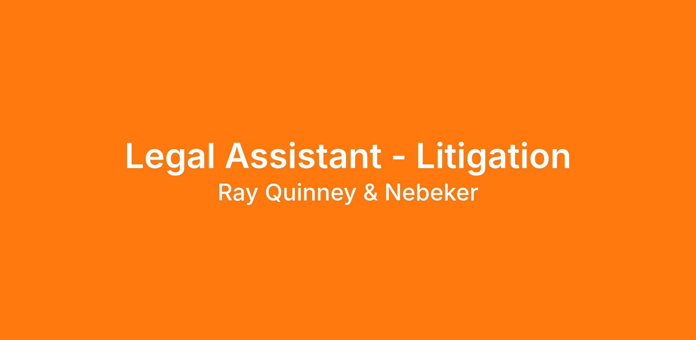 Ray Quinney & Nebeker of Salt Lake City, UT, one of the largest and most reputable full-service law firms in Utah, is looking to hire a full-time Legal Assistant for its Litigation group.