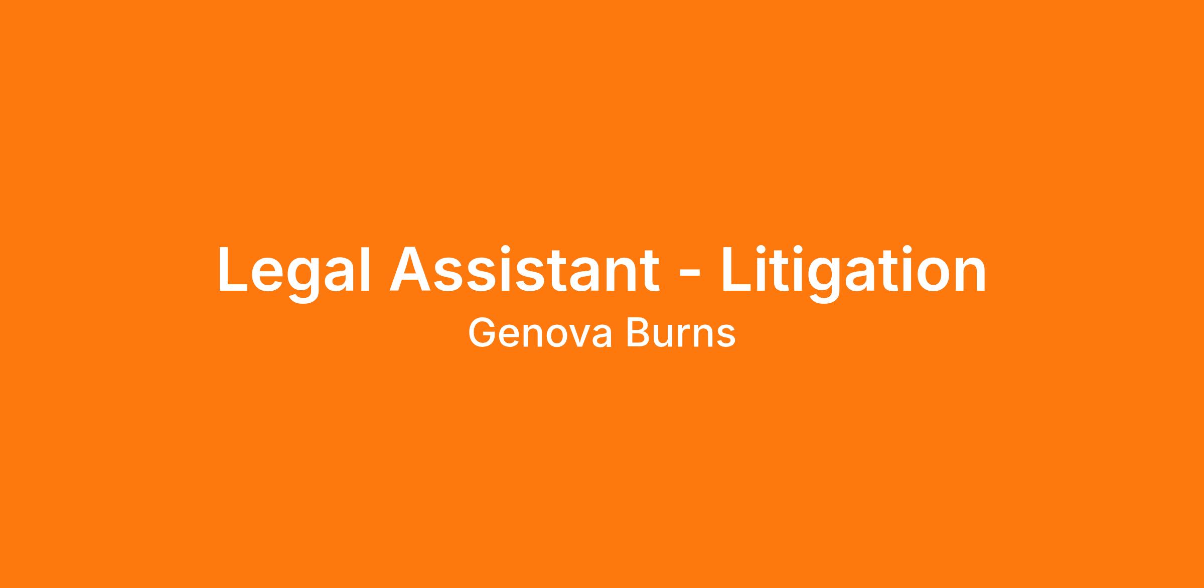 Genova Burns LLC, a mid-sized law firm, is seeking an experienced Litigation Assistant for its Newark, NJ office. For more information about the firm, please visit us at our website, www.genovaburns.com.