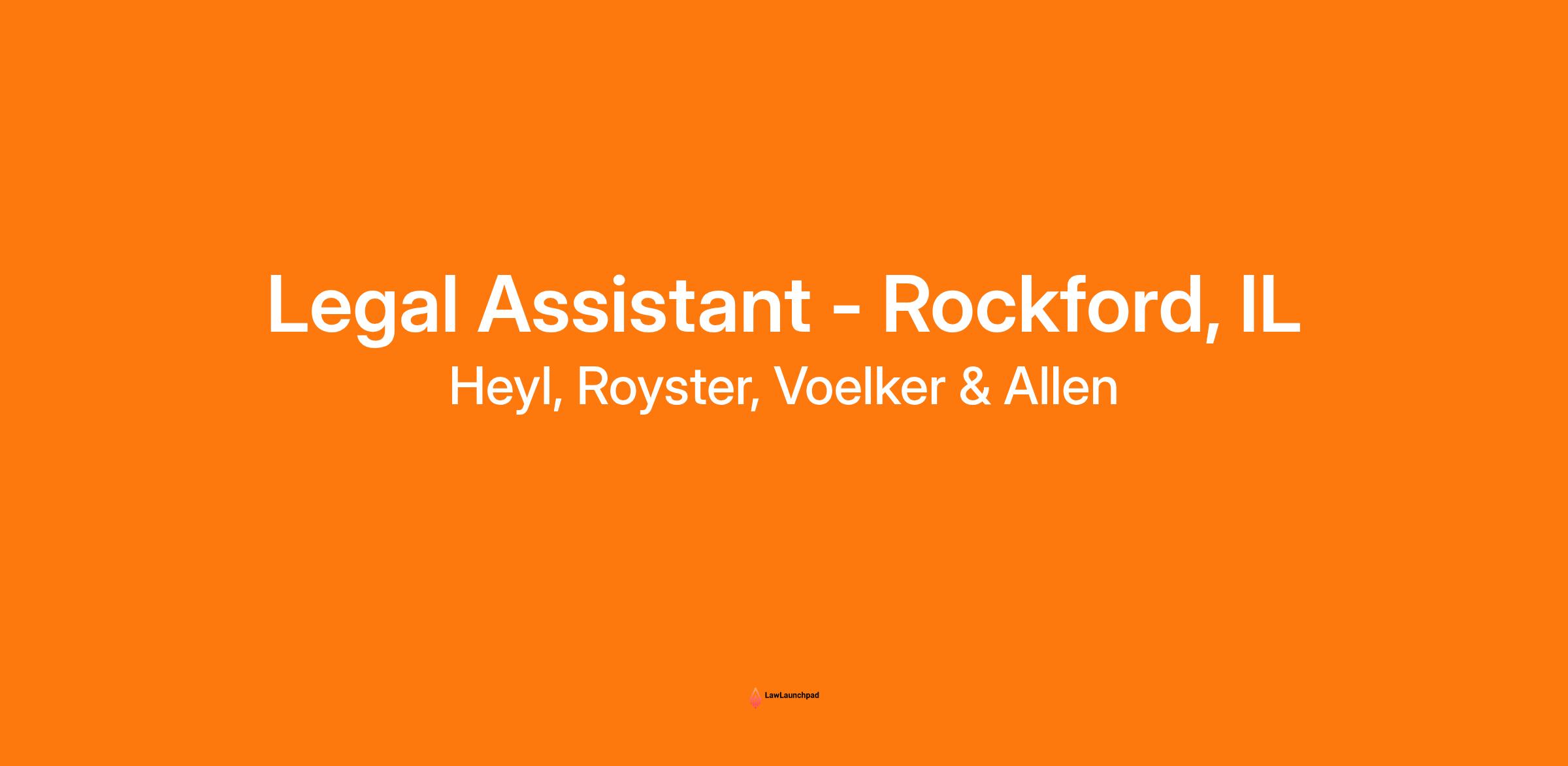 Heyl, Royster, Voelker & Allen, P.C., is a large, fast-paced law firm seeking a motivated, organized, and reliable individual for a full-time experienced Legal Assistant position in our Rockford office.