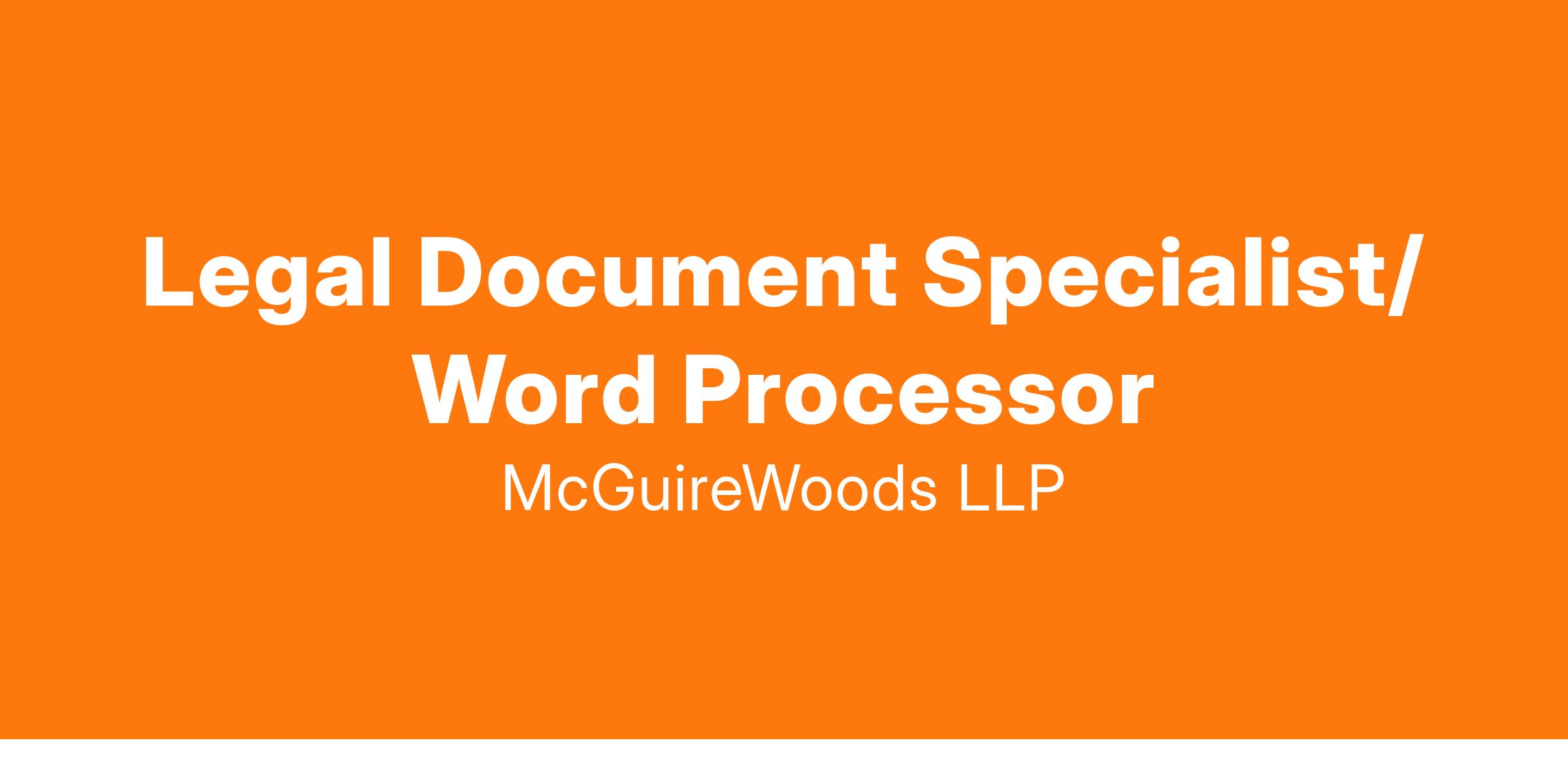 McGuireWoods LLP has an opening for an experienced Legal Document Specialist. The Document Specialist serves as a business resource by providing document services, management and information processing to the firm using all available software applications and platforms. This hybrid position is for the 2nd shift, Monday through Friday in addition to weekend coverage.