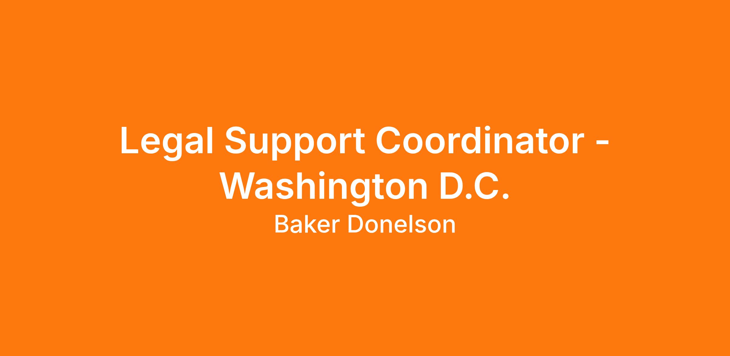Baker, Donelson, Bearman, Caldwell, & Berkowitz, PC has an opening for a Legal Support Coordinator in its Washington, D.C office. Candidates should have 5 years of experience, a positive attitude, and a solid work ethic. Prior experience in a law firm is a must.